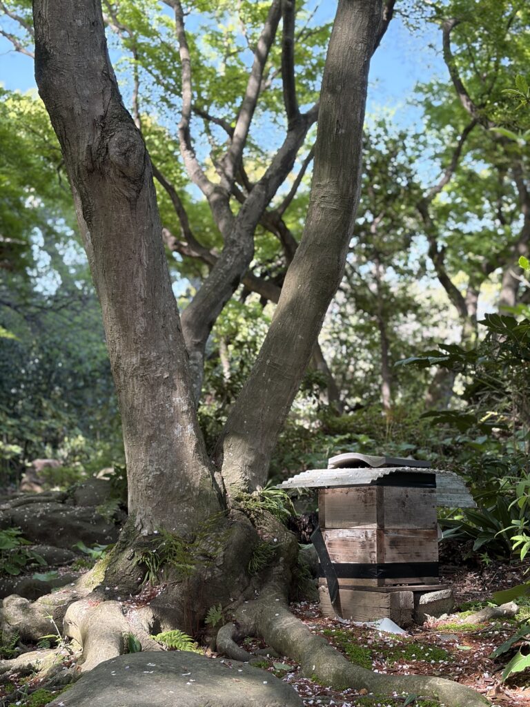 この場所は一日を通して木陰になっており、直射日光の影響を受けにくい、蜂たちにとって過ごしやすい環境です。