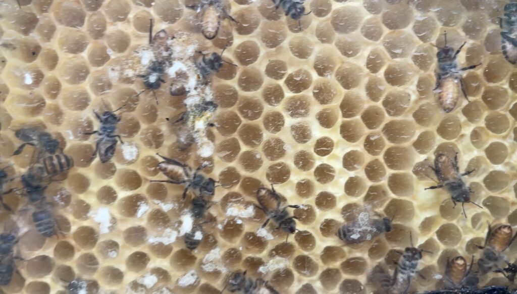 - 貯蜜はまだなかったが、蜂が層にいるのを確認して安心